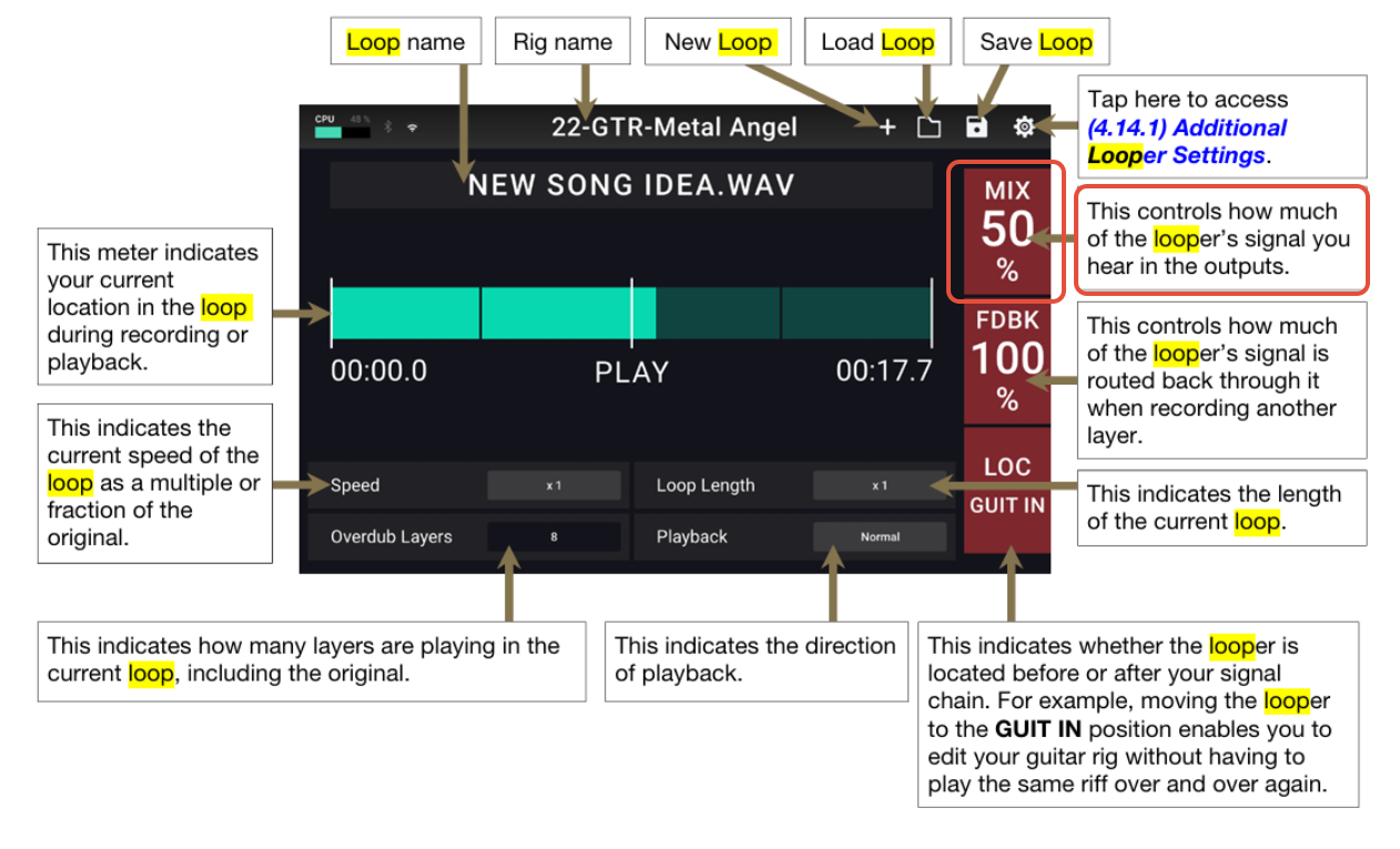 You can increase the mix percentage to make the loop louder or decrease the mix percentage to make the loop quieter.