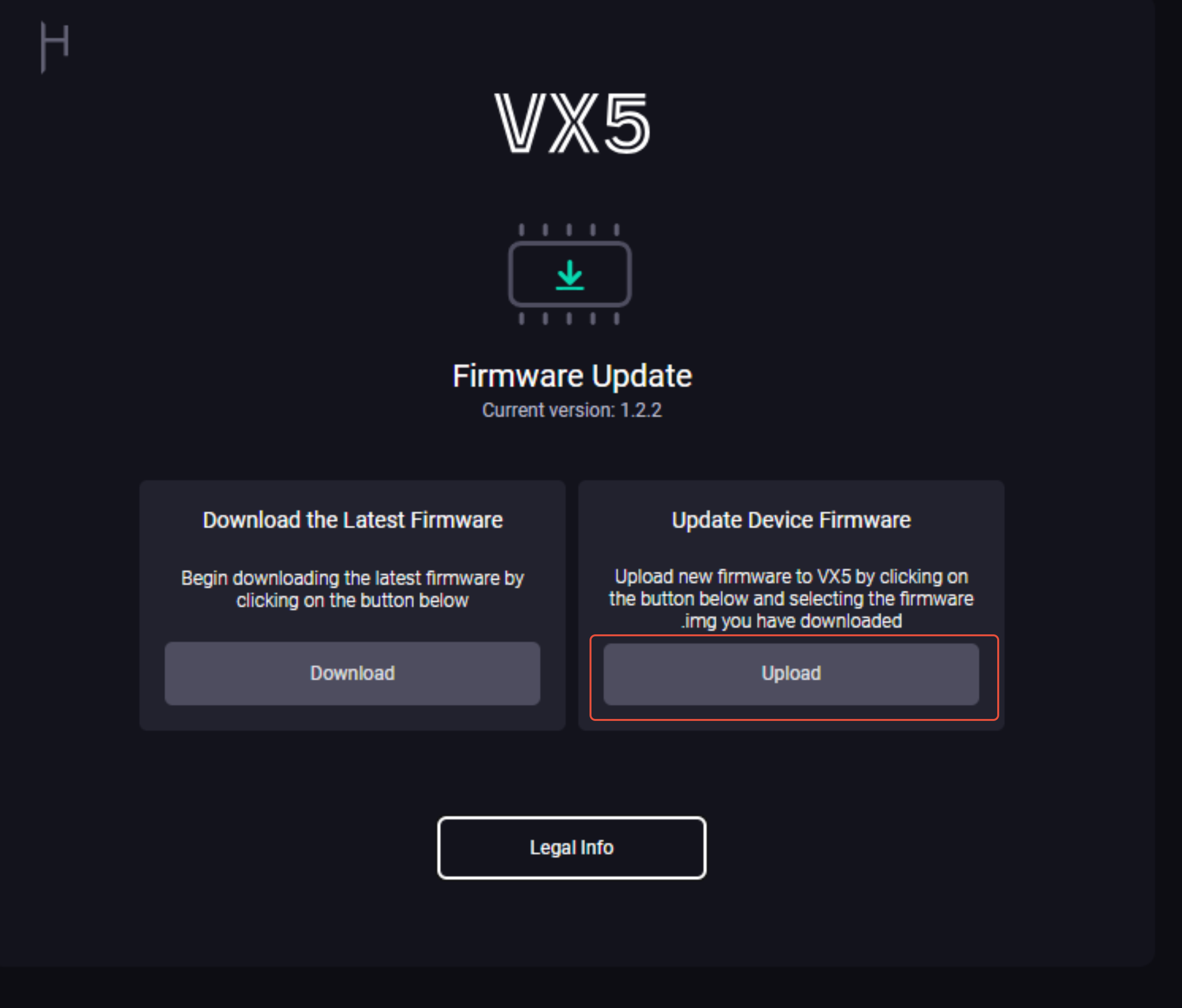 3. Download the latest firmware update file by selecting “Download”. The file will be labeled as HeadRush-VX5-[version].img. Example, "HeadRush-VX5-1.2.2.img."