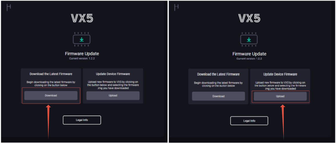 3, VX5のWebインターフェース・ページが表示されます。「Download」を選択すると、最新のファームウェア・アップデーター(.img ファイル)がダウンロードされます。ファイルはダウンロード・フォルダに保存されます。
